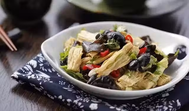食材:腐竹40g 黑木耳1小把 香菜3顆 紅辣椒1顆 辣椒油適量 鹽適量 生抽適量 香醋適量 胡椒粉適量。