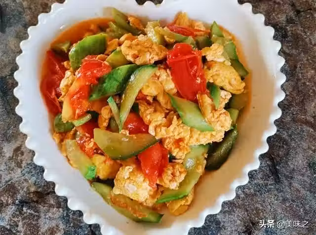 雞蛋3個、西紅柿2個、黃瓜半根、小蔥2棵、蒜2辮、鹽少許、白糖少半勺、雞粉少許、食用油適量、胡椒粉少許。