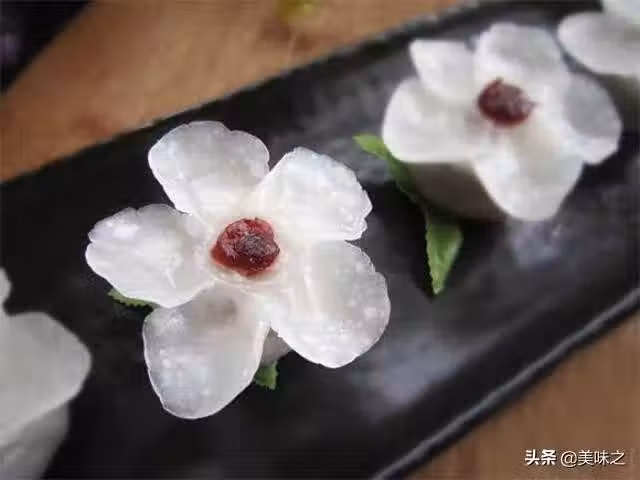 澄粉75g、生粉生粉25g、沸水適量、糖1/4小勺、油適量、蔓越莓餡適量。