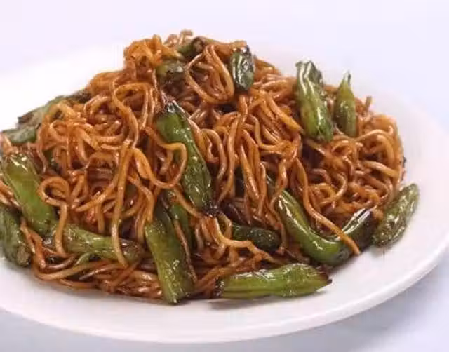 豆角 適量 ;小紅油;開水 適量500克;細麵條 200克;肉沫 50克