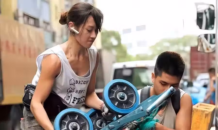 在視訊中,朱芊佩不僅白天要在炎熱的陽光下,乾的汗水淋漓,不斷地推著滿載貨物的小車來回奔波。