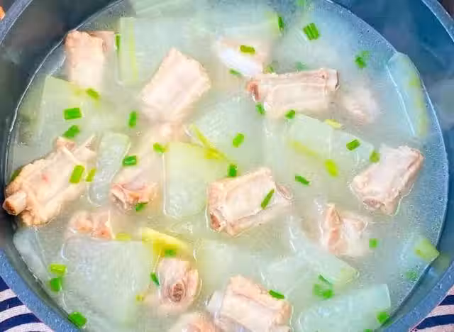 (1)冬瓜洗凈去皮切塊,鮮排骨洗凈剁塊浸泡片刻,生薑去皮切片,香蔥切蔥花備用。