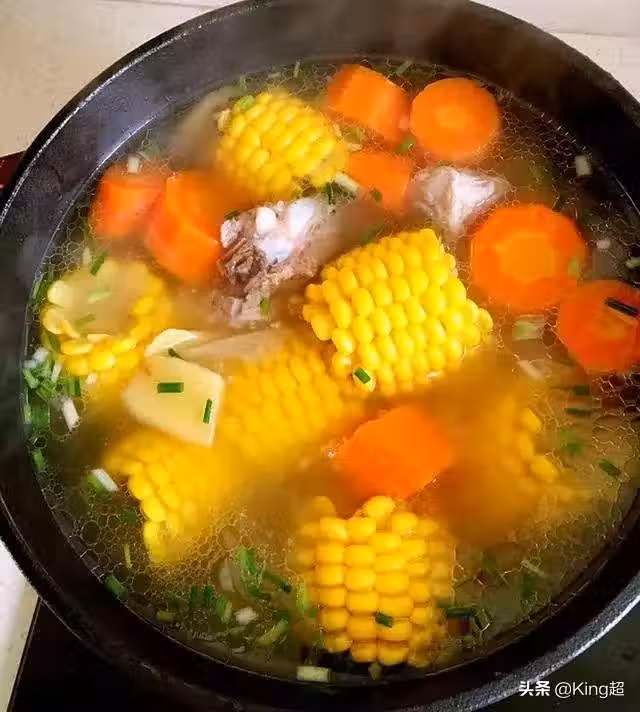排骨兩根、玉米2根、胡蘿蔔1根、姜4-5片、蔥2段、料酒3勺、鹽適量