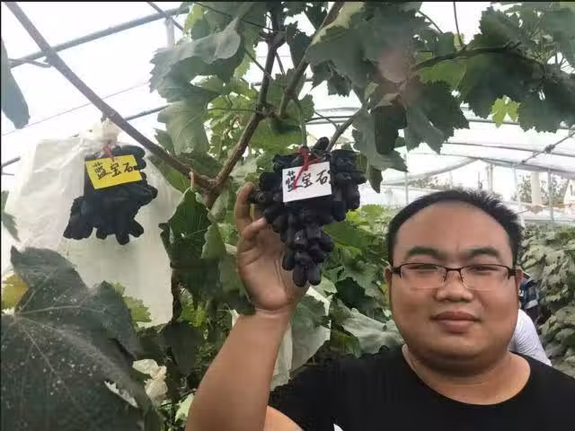 而現在最流行的果樹盆栽莫過於它啦。這種奇特的葡萄,名叫藍寶石葡萄,是我國最新培育的新品種,近幾年才開始大肆種植。這種葡萄口感獨特,味美汁多,而且無籽無核,可以直接吃完,不需要吐皮。