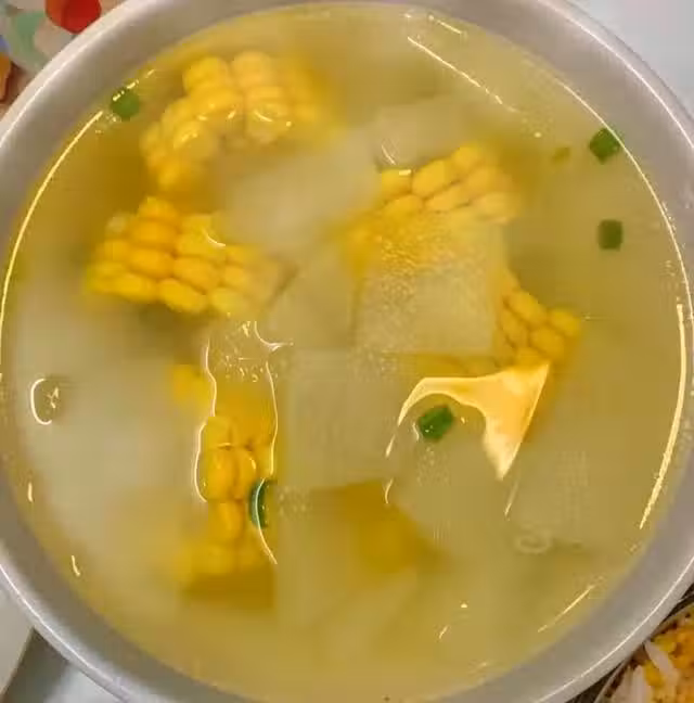 (2)鍋中熱油爆香蔥花,下入冬瓜和玉米,倒入適量清水漫過食材。