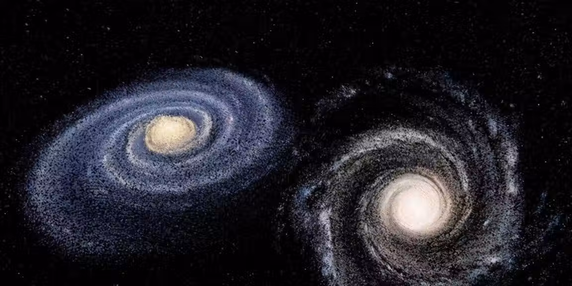 銀河系和仙女座星系的範圍可能遠比我們想像的要大,尤其是銀河系的最外層,幾乎由各種熱氣體和星系塵埃組成,銀河系的外層可能會延伸向外100萬光年的距離,而仙女座星系的星系暈更大,可以向外延伸約200萬光年,現在兩個星系的星系暈已經重疊接觸,兩者發生碰撞星系已經開始。