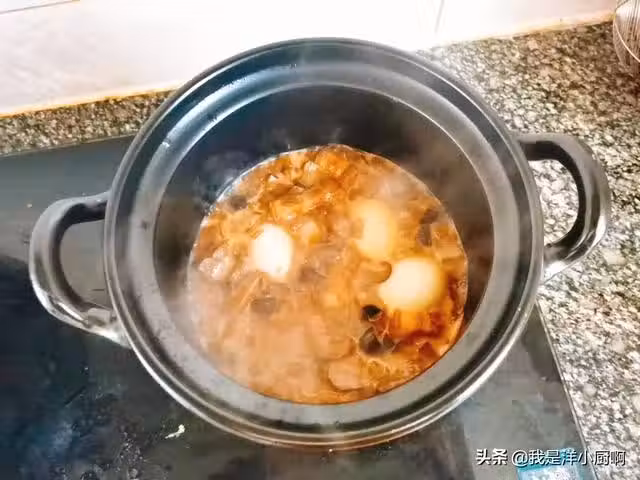 (4)燉好之後不用急著盛出來,可以蓋著蓋子再悶一會兒,這樣滷肉會更加的軟糯,更好吃。