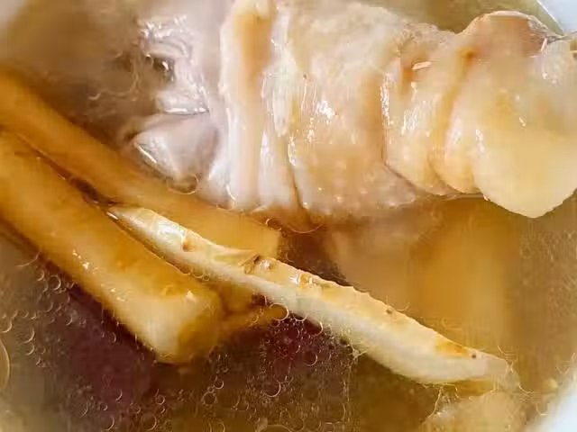 食材準備:淮山、玉竹、黨參、黃芪、紅棗、枸杞子、母雞、薑片、蔥段。