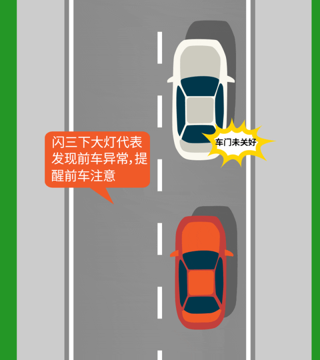 當我們變道超車或者在高速公路匝道出主幹道等情況下,需要並線時,如果發現旁邊車道的後車連閃大燈,這就意味著對方拒絕己方的變道請求。這時候就不要強行超車或變道了,應該放慢車速等待下一次變道機會。