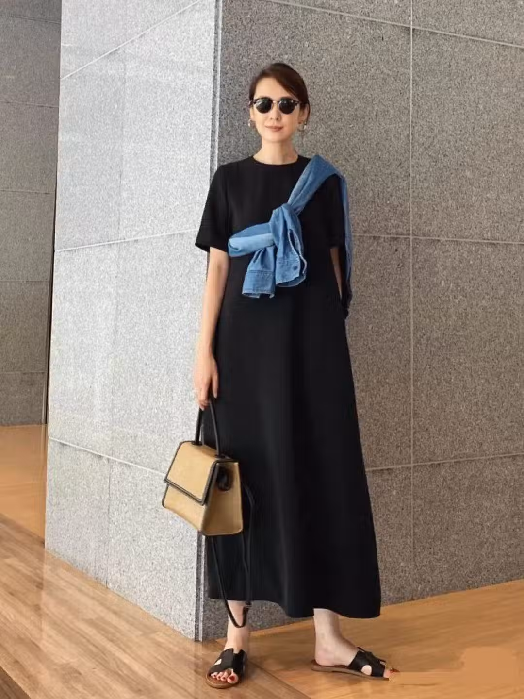 如無袖連衣長裙、襯衫連衣裙或者T恤連衣裙,都是很適合大齡女人的選擇,顯氣質又體面。