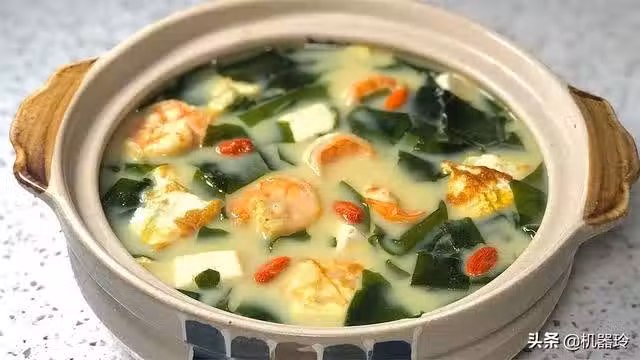 第一道:裙帶菜蝦仁豆腐湯