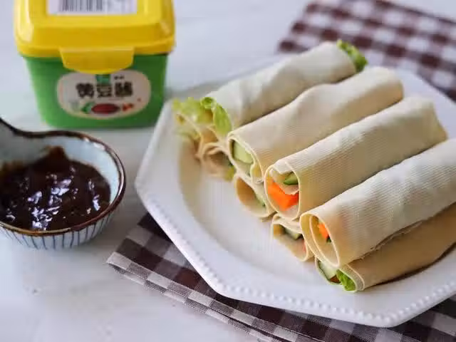 今天給大家帶來一道很棒的減脂餐,食材豐富,但製作非常簡單,熱量低而且非常管飽哦!食材主要是豆腐皮、黃瓜、胡蘿蔔、生菜等。