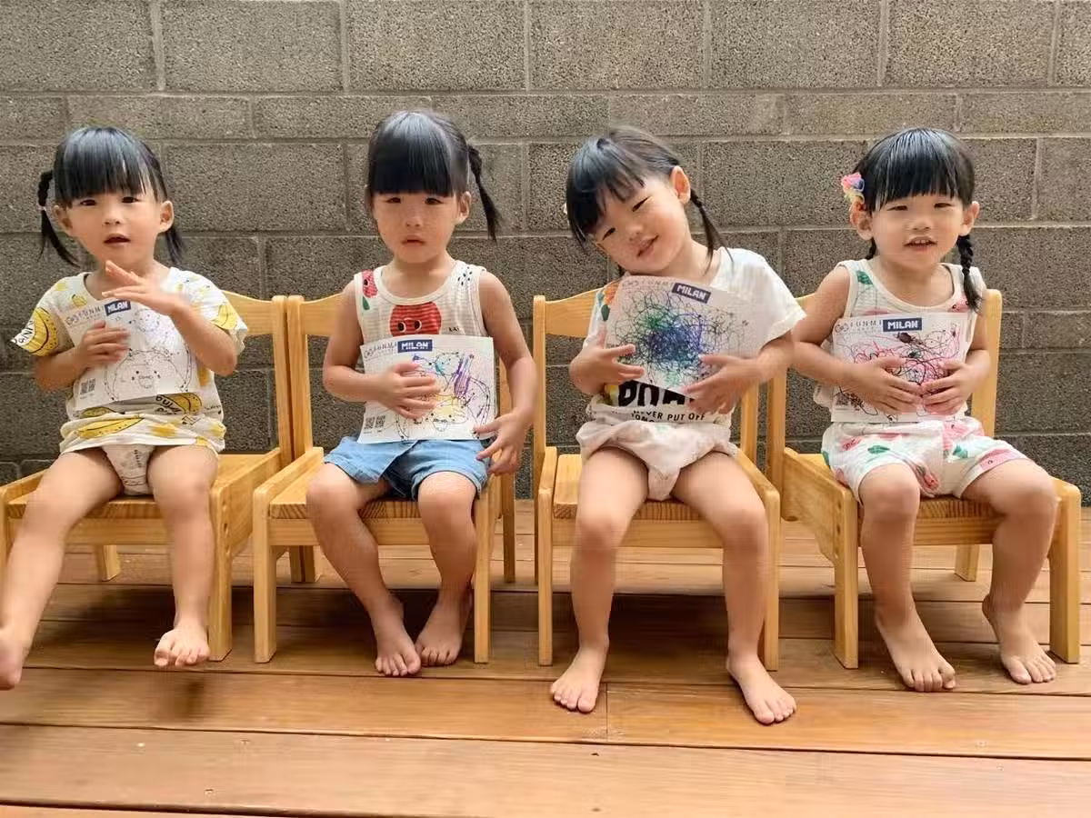 又或者只要其中一個哭了起來,另外三個就會跟著哭,後來女兒們又學會爬行跟走路,一眨眼就會到處鑽,讓她常常很崩潰。然而這四個寶貝女兒其實相當得來不易,蕭亞芝與先生王棟材在2013年結婚,由於肚子一直沒有消息,最後只好選擇打針,「第一次檢查是雙胞胎,第二次變三胞胎…最後,竟然是四胞胎」當下蕭亞芝聽到時,只是笑了笑而已。