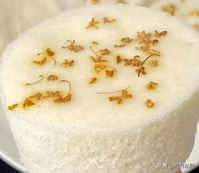 2.蒸:撒上一點桂花蒸30分鐘,再燜5分鐘出鍋。