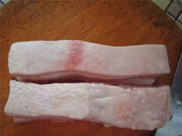1)用叉子或釘子刷在去皮的肉上戳一些小洞,讓肉滴一些油出來,使之不膩。見肉塊太厚難入味,把它一分做二,變成四片。