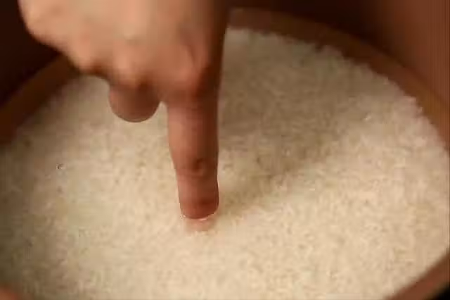 3、添上水之後,這時候技巧就出來了,很多人直接蓋上蓋子煮,這是不對的。正確做法是,應該往鍋子裡,多加2樣,第一種是白醋,加入3滴即可,加上之後米飯更清香,第二種是食用油,也是加上3滴,放上之後米飯飽滿,粒粒分明,更油潤。