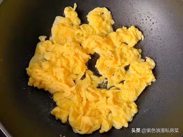 4.鍋中放油,放入雞蛋,炒散後盛出。