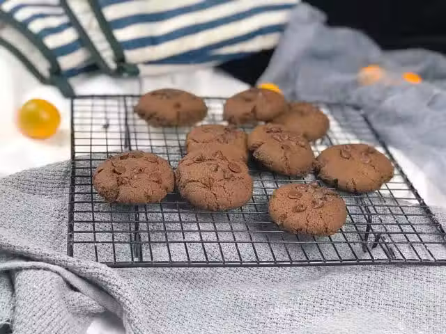 黃油120克、低筋麵粉230克、糖粉80克、紅糖20克、鹽2克、雞蛋55克、可可粉20克、小蘇打4克、耐烤巧克力豆適量