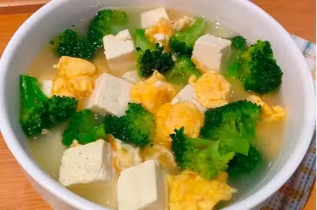 步驟二:熱鍋燒油,雞蛋滑熟盛出。再倒入兩碗清水,煮開之後放入西蘭花和豆腐煮熟,再放入雞蛋,加適量鹽調味即可。清淡營養的湯水就做好了,夏季多喝可以給身體補充維生素、蛋白質和水分。