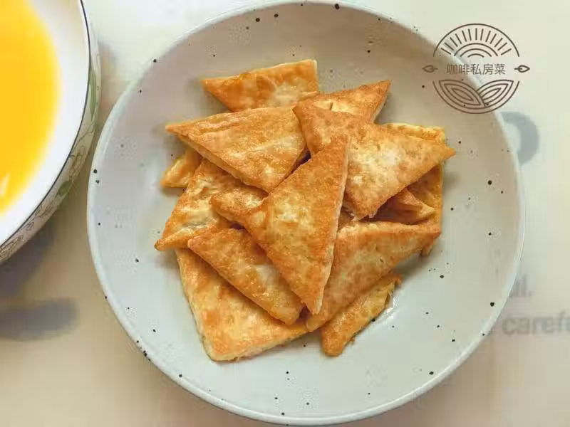炒鍋燒熱入油,放入豆腐小火煎,不要急於翻面,要耐心等著煎得金黃再翻面。