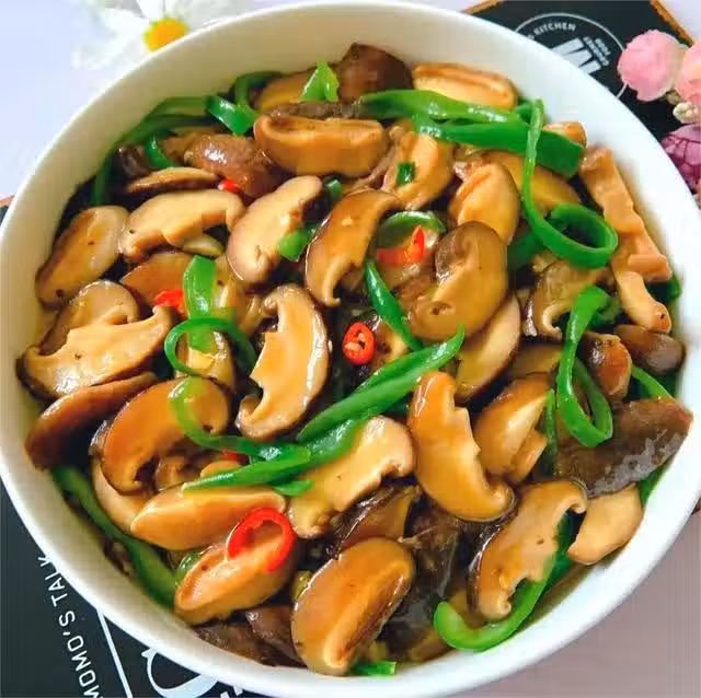 步驟三:鍋中燒油,下入蔥、蒜炒香,放入香菇片翻炒均勻,加一勺生抽、一勺蚝油、適量鹽,放入青椒絲、小米辣、翻炒均勻即可出鍋。香菇特殊的香氣受到很多人的喜歡,它的營養豐富,吃起來口感也很很特殊,但是味道真是鮮得沒話說。