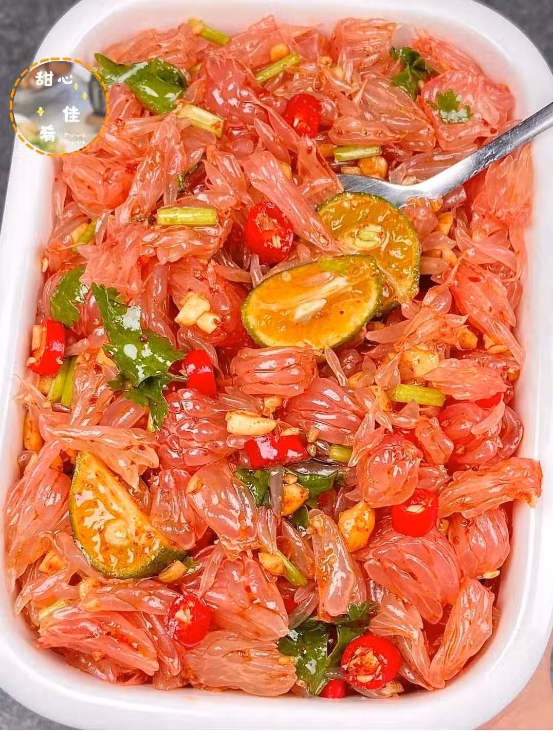 最近家裡剩了好多柚子吃不完,剛好前天看到有人做涼拌柚子,這不得試試!!
