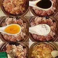 雞腿去骨切丁+一勺生抽+一勺料酒+一勺澱粉+少許鹽和黑胡椒粉抓勻腌制20分鐘,香菇切丁備用
