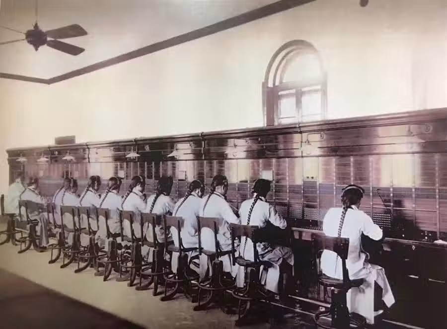 早在清朝時中國就有了電話機,那時的電話機還僅是一種西洋玩具,一群留著辮子的男子在電話局負責轉接電話