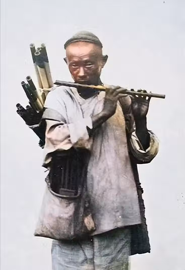 一位賣笛子的小販,清朝勞苦人民的真實寫照。