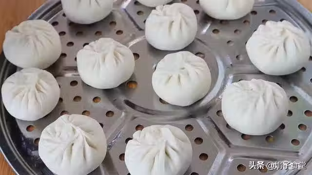 19.時間到關火,先把蓋子揭開一個小縫散散氣,等5分鐘再開蓋,這樣可以防止小籠包塌陷、回縮,最後開蓋我們熱氣騰騰、白白胖胖的小籠包就做好了。