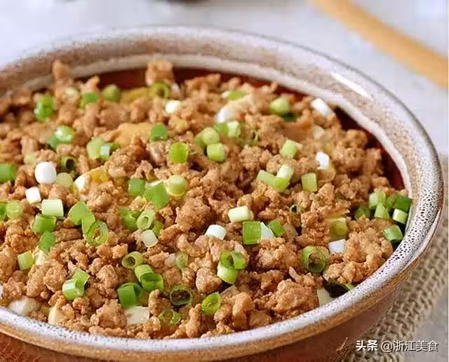 鍋里熱油,放入蔥姜爆香,倒入肉末,迅速劃散,倒入生抽翻炒幾分鐘加鹽即可。