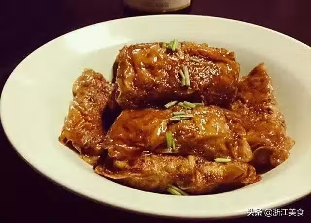 撒上蔥花,豆腐衣包肉,完成!