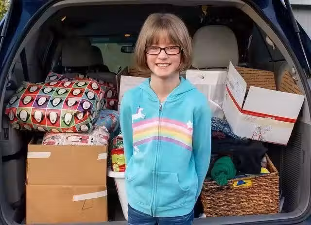 許多人聽說了海莉的事蹟,認為她比慈善機構還要靠譜,於是捐贈給她一些菜種子和錢。圖中是耶誕節前夕,海莉用自己的零花錢買了許多禮物準備送給流浪漢。