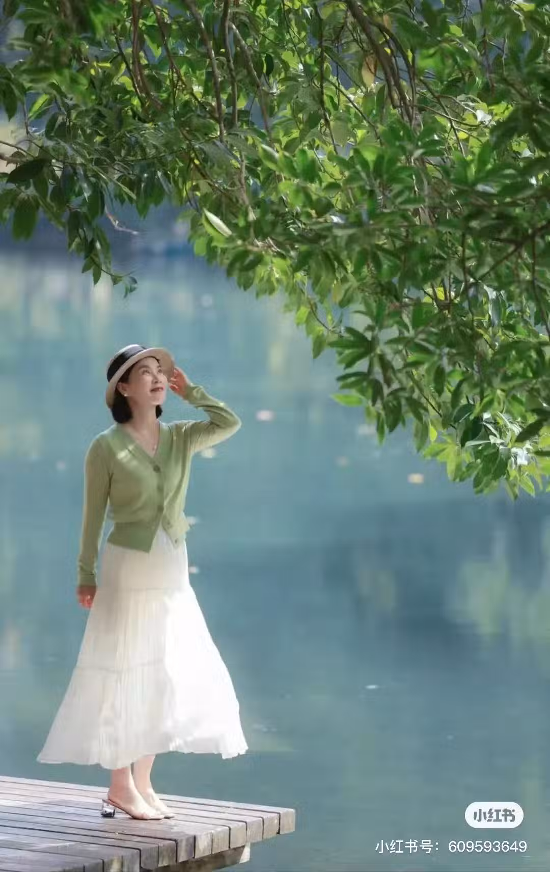 前面我們也說了,拍照的時候,可以擺拍側身照,現在要說的這個姿勢,是可以讓自己側身的同時,回頭看鏡頭或者看其他東西,自然抓拍下來,也能拍出中年女士的氣質和優雅,很自然。