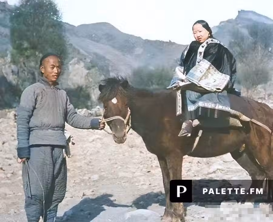 在清朝時期,有一位地主婆騎馬出行。她穿著華麗,腳上裹著三寸金蓮。這表明坐轎子並不是一般家庭能夠擁有的。