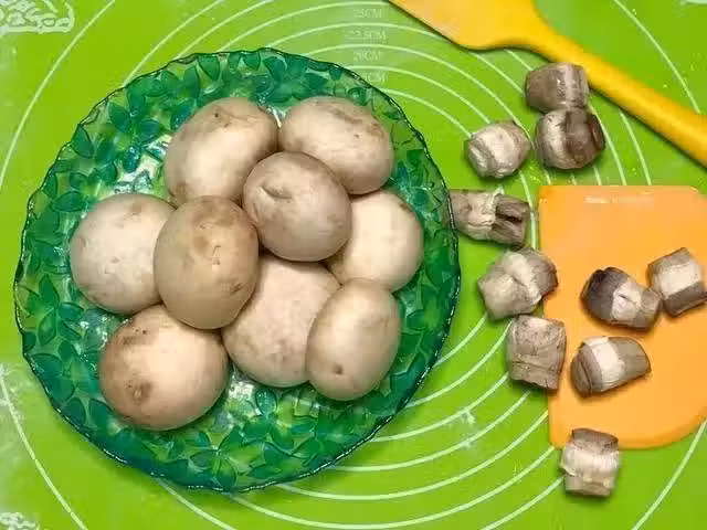 1新鮮白蘑菇清洗乾淨,去菌柄;