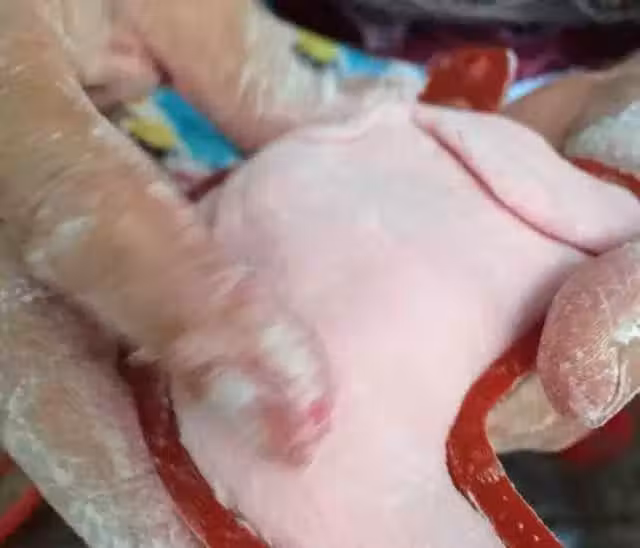 包完餡,形成三角(一邊長,兩邊短