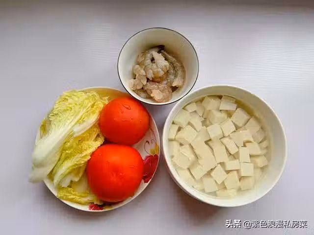 1.準備食材並清洗乾淨,豆腐切小塊,放一勺鹽,在清水中浸泡,可以去豆腥味。