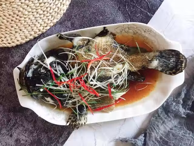 3、將魚放入魚盤中,加入生薑和蔥段,等鍋中水煮沸後,把魚上鍋蒸,大火蒸8分鐘左右就可以出鍋,出鍋後把魚中的水倒掉一部分。