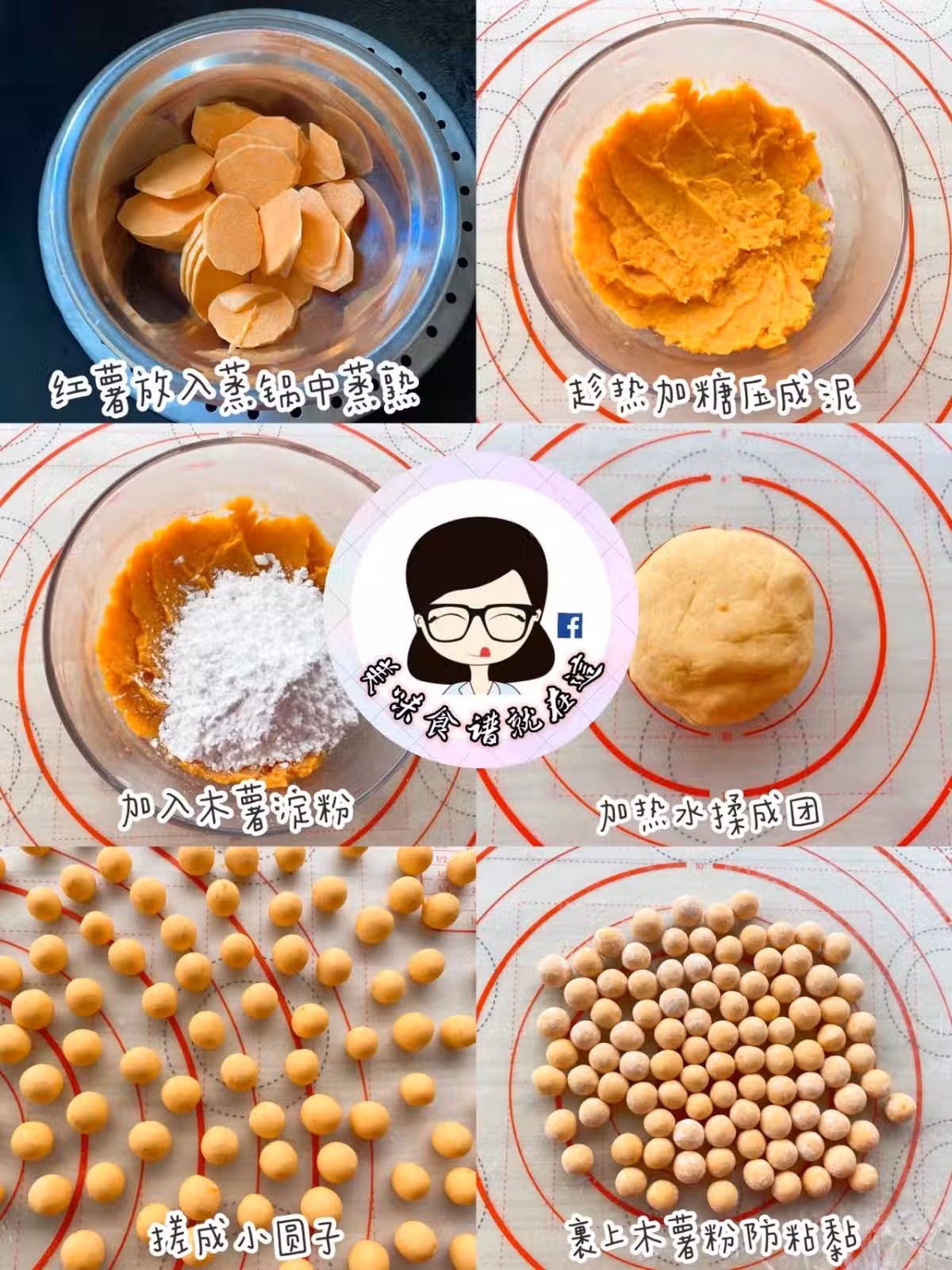 原味芋圓:芋頭 150克 木薯澱粉 80克 開水 50克 糖 20克