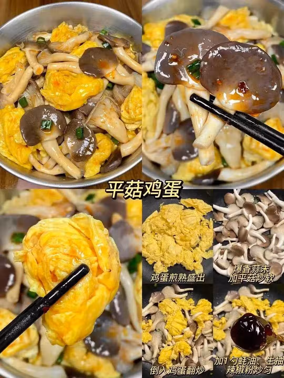 主料:平菇、雞蛋。配料:蒜、油、蠔油、生抽、辣椒粉。