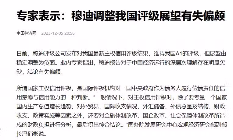 中美金融戰開始了?穆迪下調我國評級,中國開始反擊