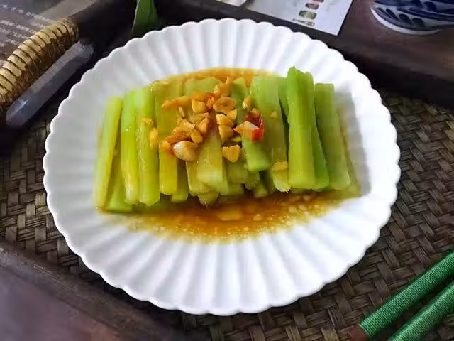 【材料】:芥蘭1個,蚝油1勺,蒸魚豉油1勺,糖適量,油適量,大蒜3瓣