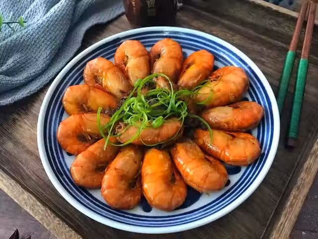 【材料】:大蝦400克,八珍八寶醬1勺,生抽2勺,料酒適量,鹽少許,老薑6片,油適量,香蔥適量