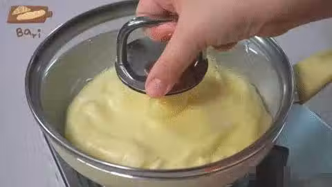 8、蛋糕發起來後小心的將它對折起來,輕輕按壓定型在翻一個面煎2分鐘左右出鍋