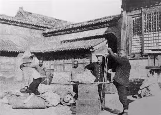 出宮之前,溥儀發給每個太監大洋10元,每個宮女大洋8元,作為遣散費。當時有太監470多個,宮女100多個,場面一片混亂,哭喊聲、咒罵聲響成一片。 圖為要求增加遣散費的太監們在衙門前集會抗議。