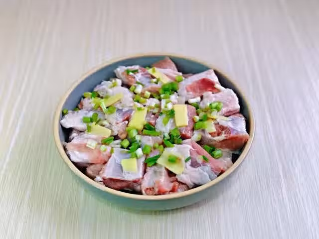 9、戴上一次性手套,將食材和調味料都抓勻,蓋上保鮮膜之後腌制,大概需要腌制45分鐘左右,這樣腌制後的排骨會更加入味。