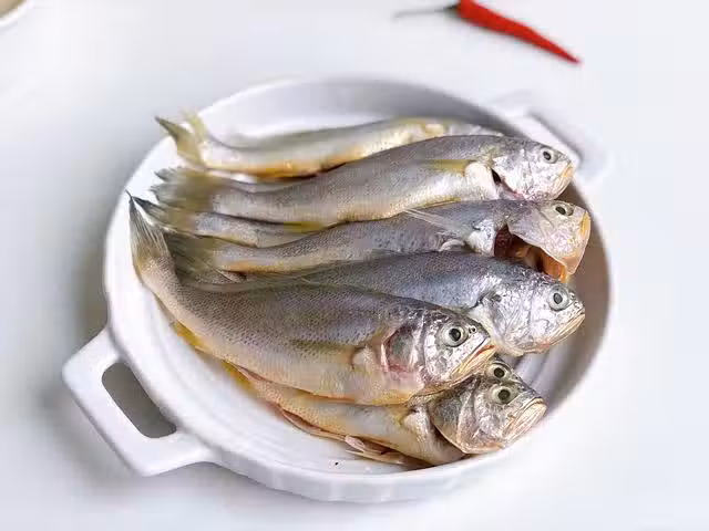第三步:起鍋燒油,油熱後,將小黃魚下鍋煎至,煎魚想要不破皮不粘鍋,一定要熱鍋時把油下鍋,油要足夠熱,把魚下鍋。先煎至一面,煎至焦黃,再翻面繼續煎,煎至兩面都焦黃酥脆。