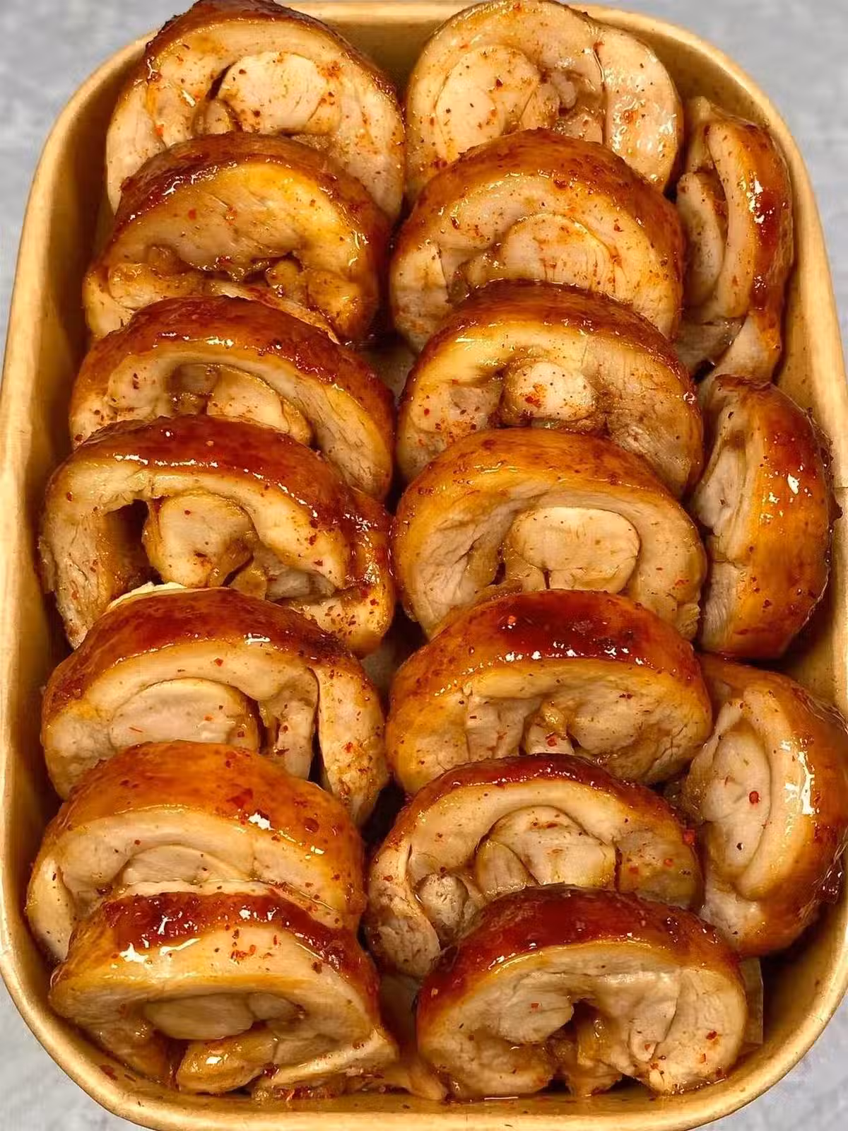 我得夸一下這個雞腿「雞腿去掉骨頭之後,烤的外焦里嫩的,輕輕的咬上一口還會爆汁,適當的撒上一些辣椒粉拌著吃,真的是一絕了」。