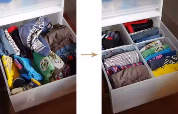 有些衣服很輕薄(絲質品、莫代爾棉),摺疊後依舊難以站立,懸掛又擔心變形,那就只好採用平疊的方式收納。另外比較厚的毛衣或者加絨的衛衣等,豎著疊反而容易佔地方,也可以採用平疊法收納。